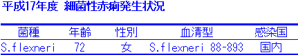平成17年度は、1人の細菌性赤痢の発生届があり、めずらしい血清型によるものでした。